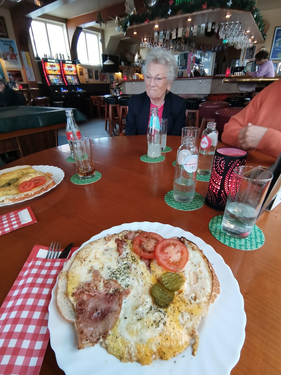 Its appeal lies in simple pleasures: a solid cup of coffee or tea, cold beer, and straightforward Dutch snacks like bitterballen and meatballs. The homemade bal gehakt (meatball) stands out as a satisfying, hearty option that pairs well with a pint or a coffee. The apple pie is another modest highlight for those stopping in during an afternoon ride or walk.